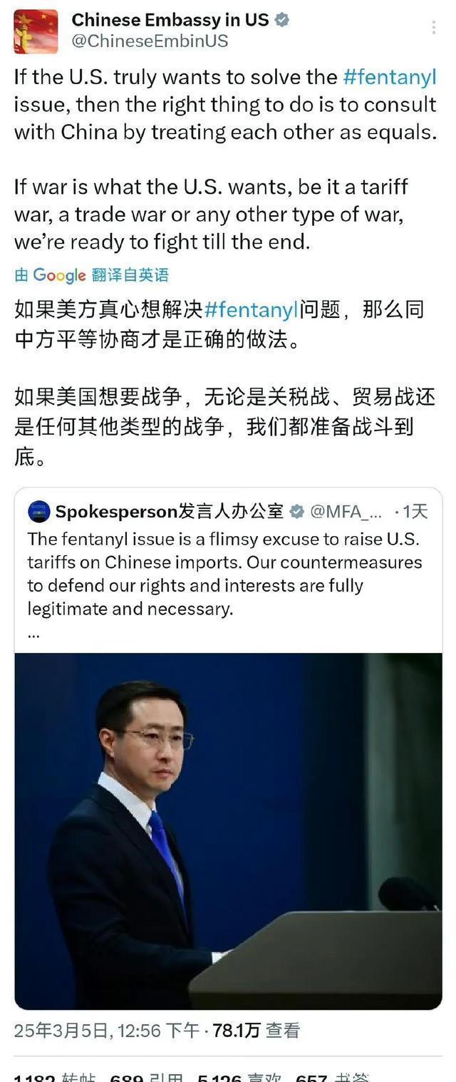从叫板到服软:48小时内美防长经历了什么 政治就是这样,态度的转变往往在一瞬间。 3月4日,中国驻美大使馆发出那份 "战争警告" 声明时,华盛顿的反应堪称戏剧性。