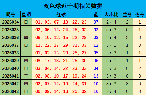 上期回顾:双色球上期开奖奖号:06 09 14 16 25 32,蓝球:16。上期红球号码大小比为2:4,红球没有开出连号,与前一期相比没有开出重号。